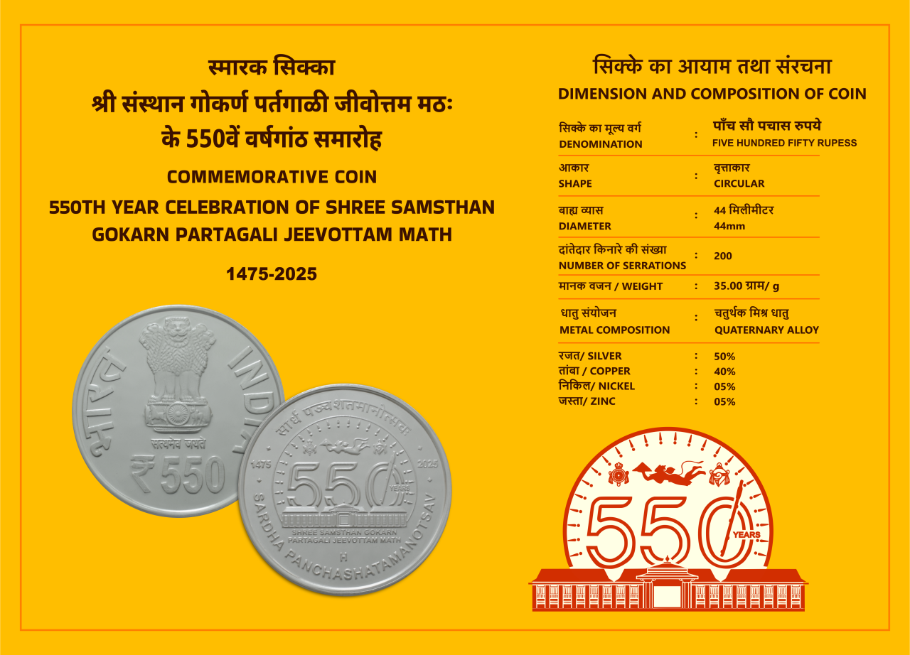 550th Year Celebration of Shree Samsthan Gokarn Partagali Jeevottam Math | Rs. 550 Proof Coin | Kappa Box