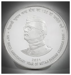 Subhas Chandra Bose affectionately called ‘Netaji’ was an Indian Nationalist born on 23rd January 1897 in Cuttack, Odisha. In 1920, he appeared for the Indian Civil Service Competitive Exam and came out fourth in order of merit. However, citing Nationalism to be a higher calling than the civil service, he did not join the same. In 1921, he joined the Nationalist Movement led by Mahatma Gandhi and the Indian National Congress. Bose at first worked with C.R. Das in Bengal under whose mentorship he flowered. Later he left Congress and formed ‘Forward Block’. He was one of the most prominent leader of Indian freedom struggle. Netaji was strongly influenced by Swami Vivekananda’s teaching and was known for his patriotic zeal as a student. On January 26, 1941 he escaped from his Calcutta residence in disguise and went outside India. He assumed leadership of Indian Independence Movement in East Asia and founded Azad Hind Fauj (Indian National Army). Azad Hind Fauz crossed the Burma Border and stood on Indian soil on March 18, 1944. His contribution to the Indian Struggle for Independence will remain etched forever in the Indian history. This commemorative coin has been minted on the occasion of 125TH Birth Anniversary Year of Netaji Subhas Chandra Bose.