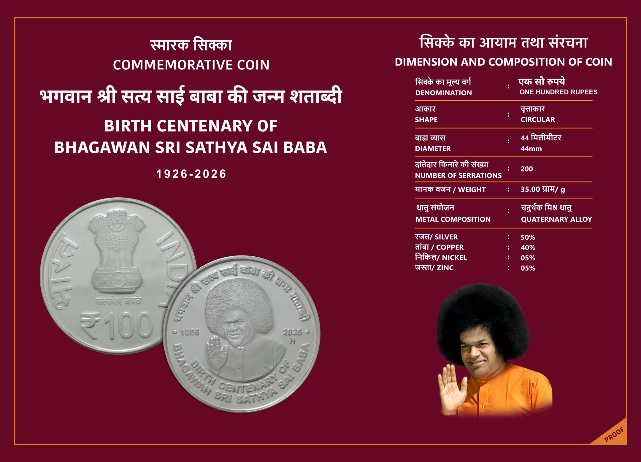 Birth Centenary of Bhagawan Sri Sathya Sai Baba | Rs. 100 Proof Coin | 3-Fold Pack