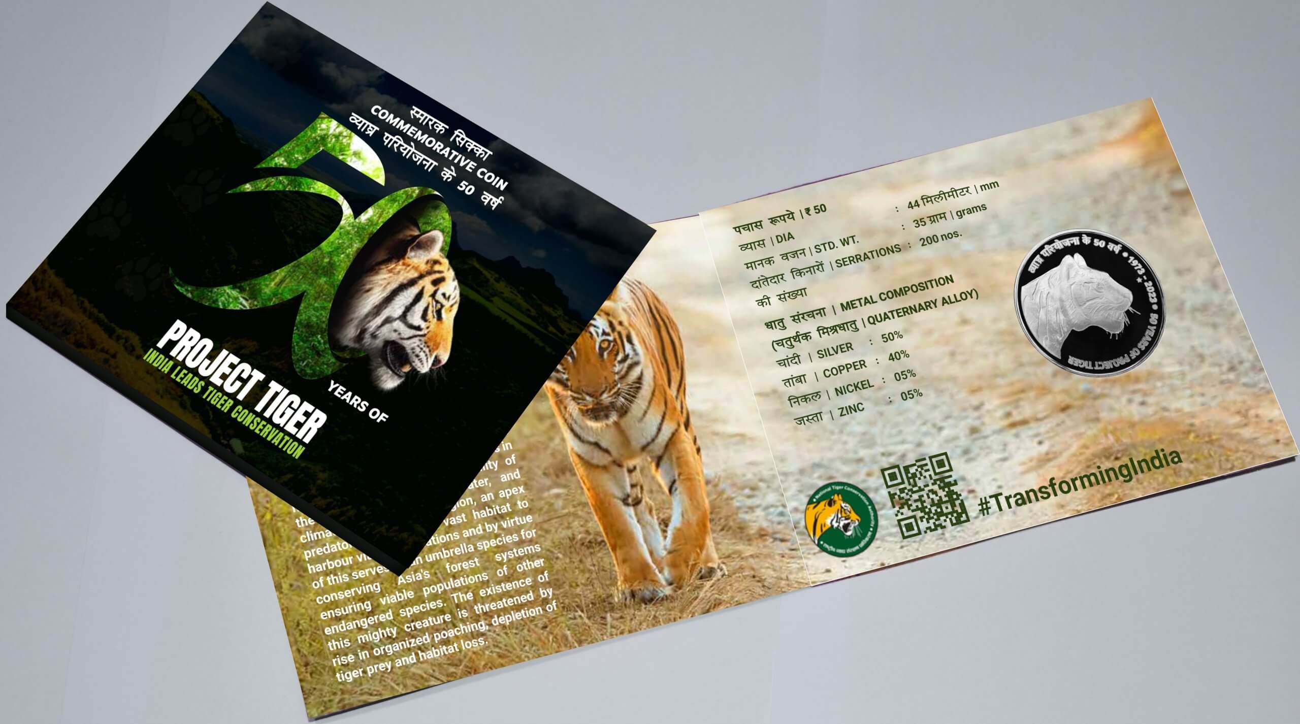 The Government of India released the commemorative coin to mark the 50 years of the Project Tiger